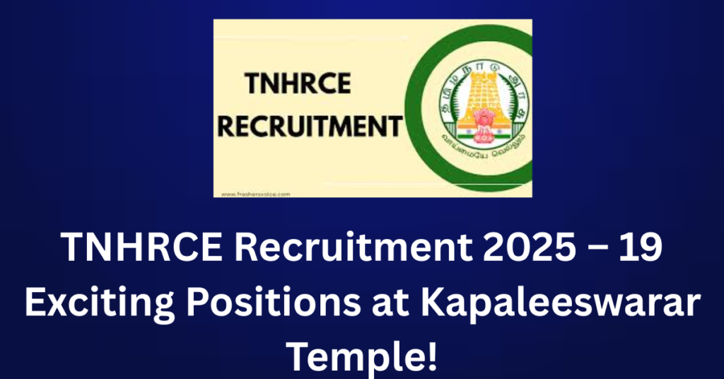📋 Overview Arulmigu Kapaleeswarar Thirukkoil (TNHRCE), one of Tamil Nadu’s most revered temples, is recruiting 19 talented professionals for various