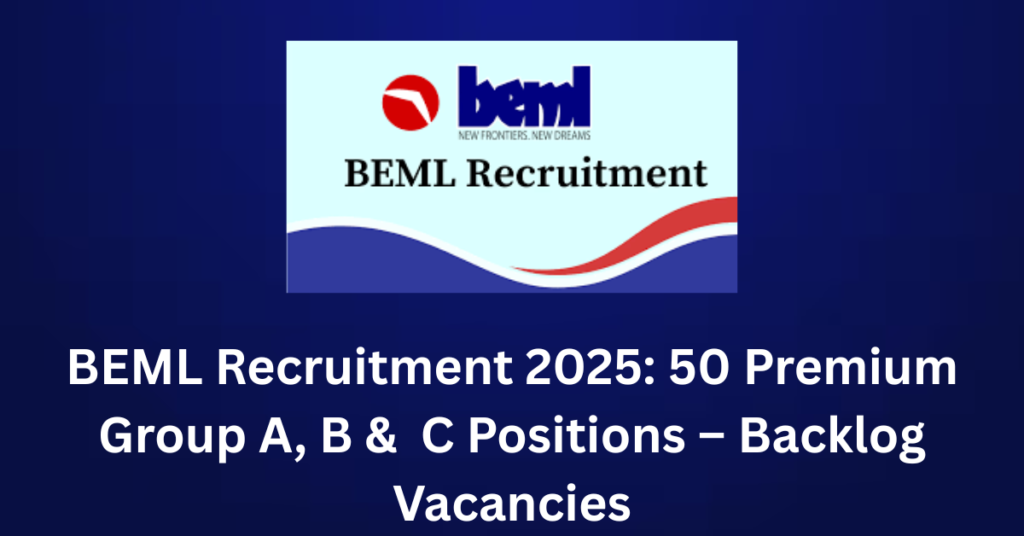 🚀 BEML Recruitment 2025: 50 Premium Group A, B & C Positions – Backlog Vacancies Overview Bharat Earth Movers Limited