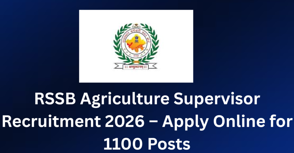 Overview The Rajasthan Staff Selection Board (RSSB) has released an exciting recruitment notification for 1100 Agriculture Supervisor (Krishi Paryavekshak) positions