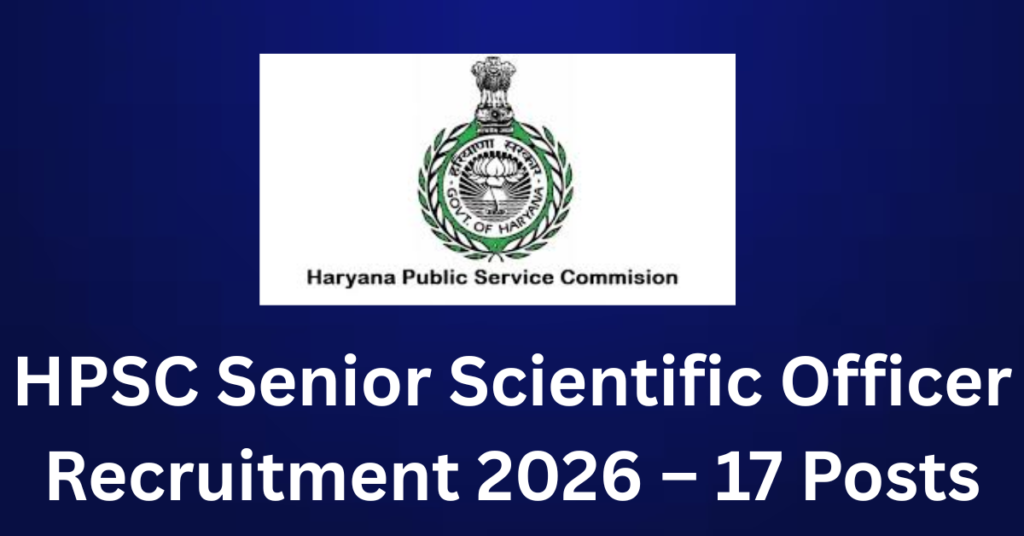 Overview Haryana Public Service Commission (HPSC) invites applications for 17 Senior Scientific Officer (Scene of Crime) positions in the Forensic