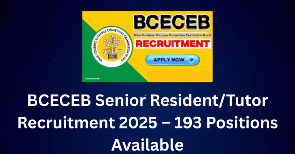 Overview The Bihar Combined Entrance Competitive Examination Board (BCECEB) is hiring 193 Senior Resident/Tutor positions across various medical institutions in