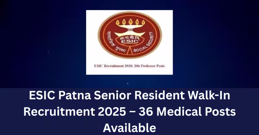 ESIC Patna Senior Resident Walk-In Recruitment 2025 – 36 Medical Posts Available