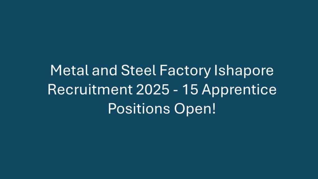 Overview Metal and Steel Factory Ishapore is looking for talented graduates and diploma holders to join their apprenticeship program! This