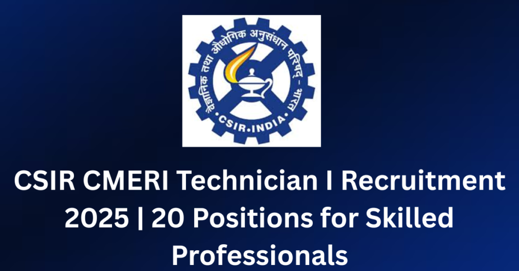 Overview CSIR-Central Mechanical Engineering Research Institute (CSIR-CMERI), one of India’s premier scientific laboratories, is recruiting Technician I positions across multiple