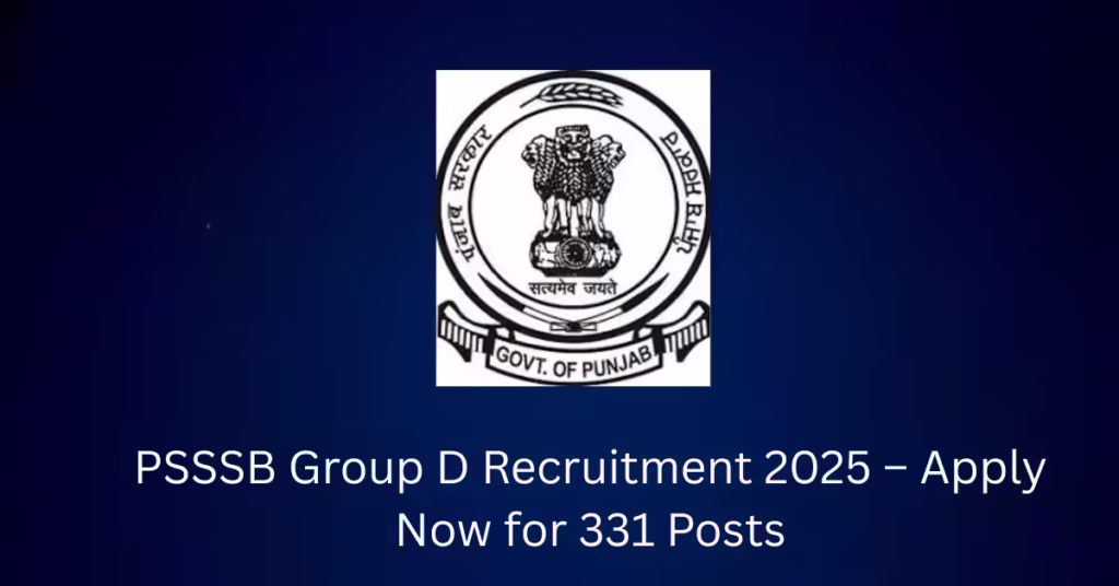 Overview The Punjab Subordinate Services Selection Board (PSSSB) is hiring 331 Group D positions across various government departments in Punjab.