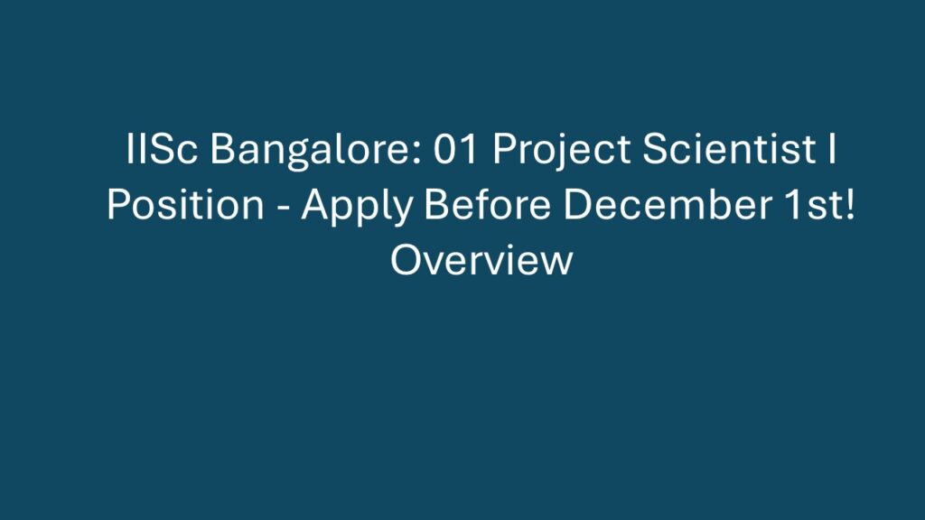 Overview The Indian Institute of Science (IISc) Bangalore, one of India’s premier research institutions, is inviting applications for a Project