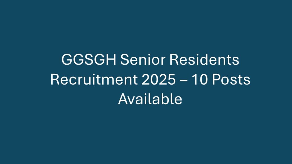 Overview Guru Gobind Singh Govt Hospital (GGSGH) is recruiting talented medical professionals for the position of Senior Residents. This is