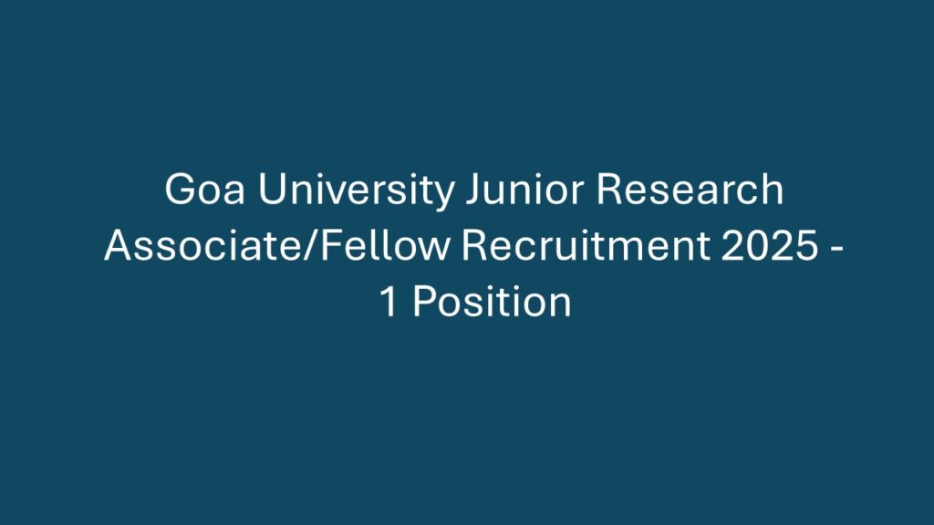 Goa University Junior Research Associate/Fellow Recruitment 2025 – 1 Position