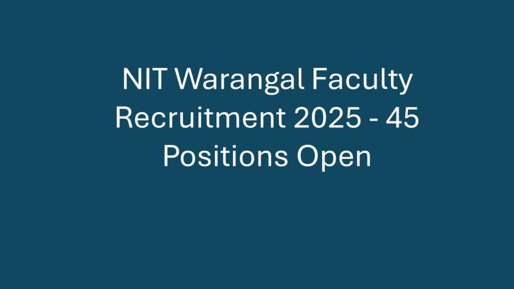 Overview National Institute of Technology (NIT) Warangal is hiring talented educators to strengthen its academic faculty. This is an excellent