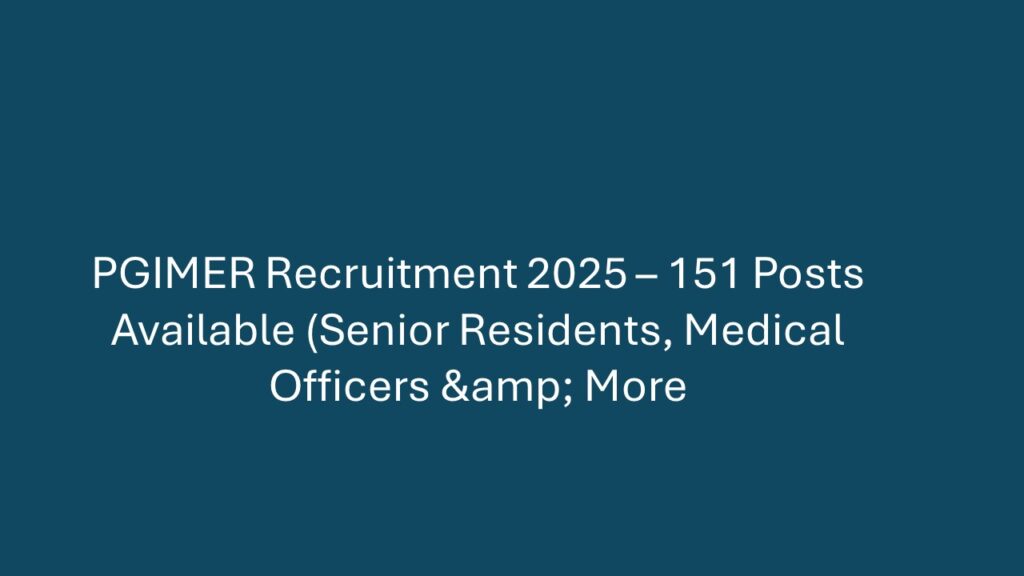 Overview Postgraduate Institute of Medical Education and Research (PGIMER), one of India’s premier medical institutions, is recruiting 151 qualified medical