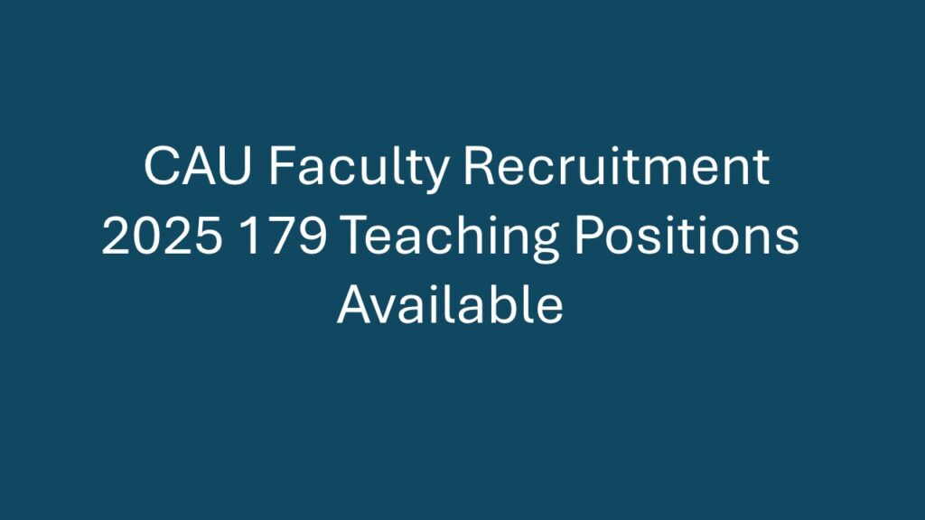 Quick Overview Organization Central Agricultural University (CAU), Manipur Total Vacancies 179 Posts Post Type Teaching Faculty (Academic Positions) Job Type