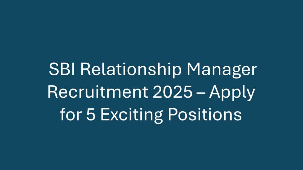 Overview State Bank of India (SBI) is hiring 5 talented professionals for the position of Relationship Manager across different sectors.