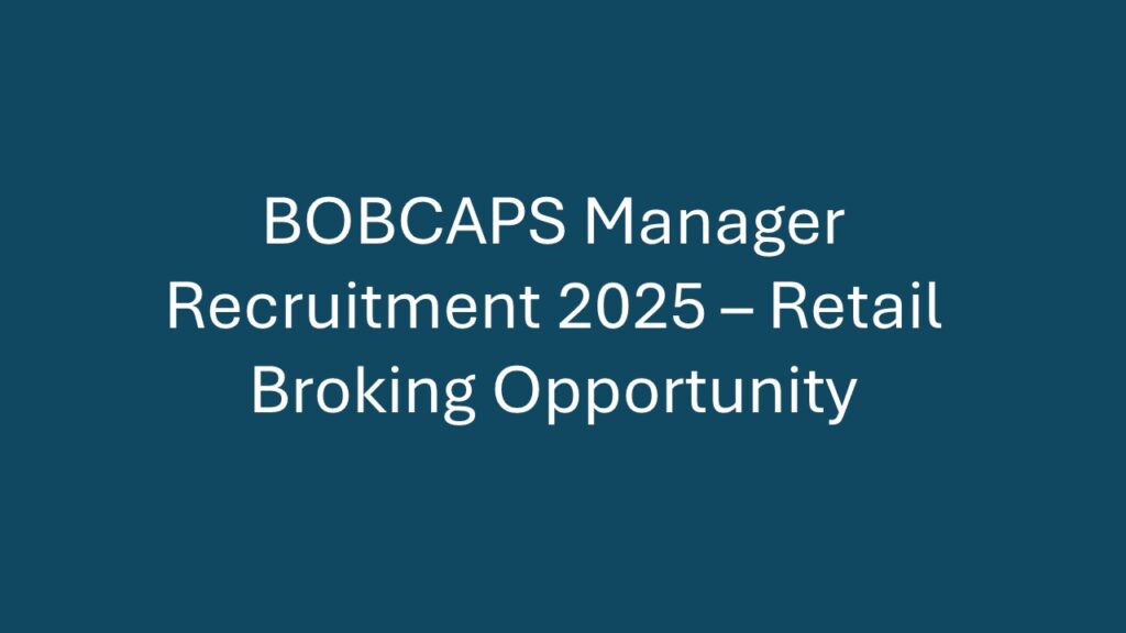 Overview BOB Capital Markets (BOBCAPS), a leading financial services company, is hiring a Manager for Retail Broking to strengthen its
