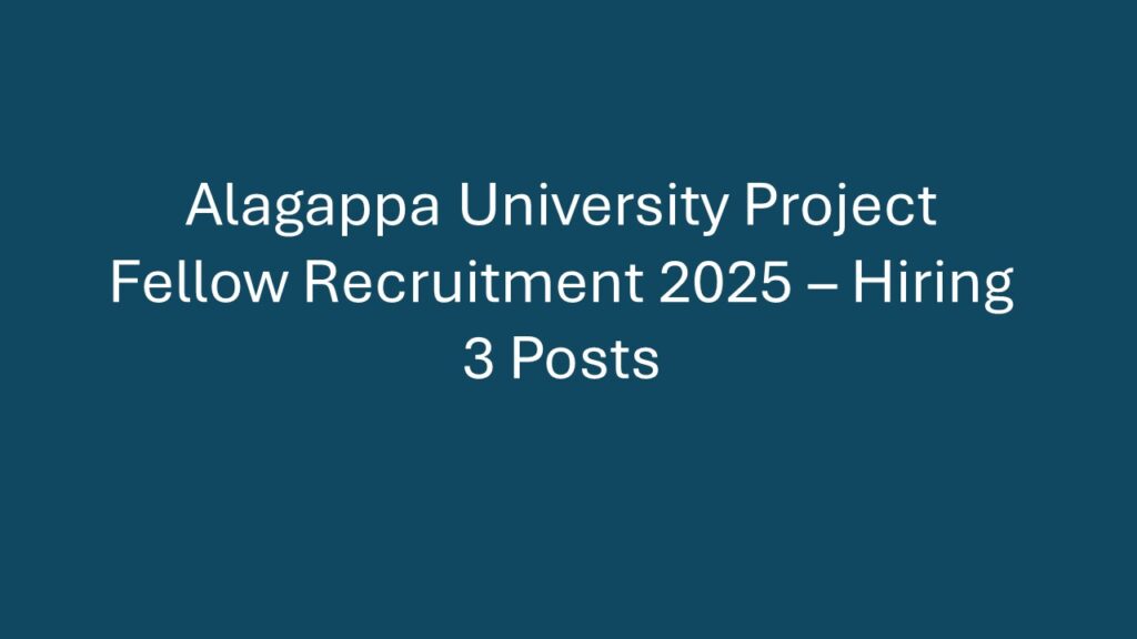 Overview Alagappa University is recruiting talented Post-Graduates for Project Fellow positions. This is an excellent opportunity for fresh postgraduates looking