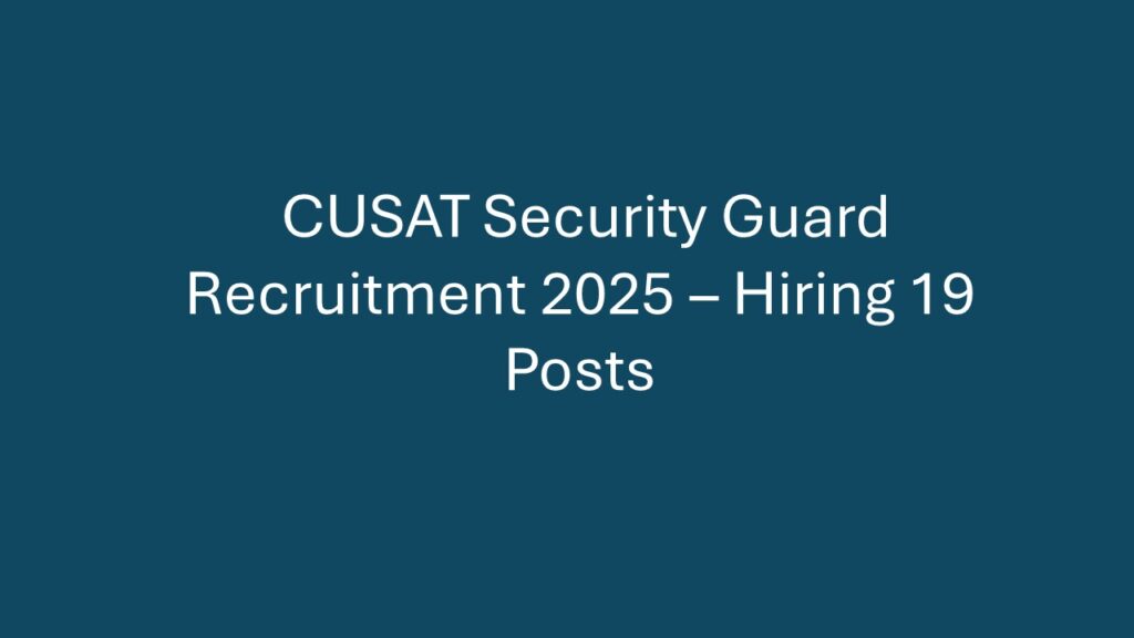 Overview Cochin University of Science and Technology (CUSAT) is hiring dedicated security personnel to strengthen their campus security team. This
