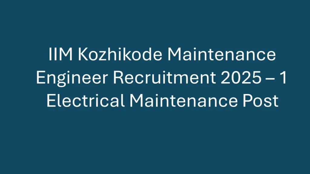 Overview Indian Institute of Management Kozhikode (IIM Kozhikode), one of India’s premier business schools, is recruiting 1 Maintenance Engineer (Electrical).