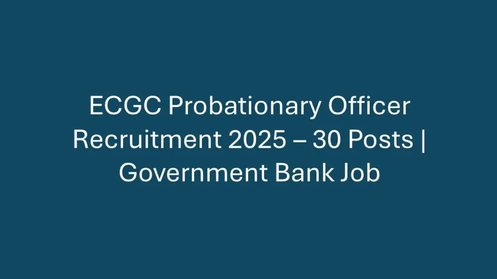 Overview Export Credit Guarantee Corporation of India (ECGC) is inviting applications for 30 Probationary Officer positions. This is an excellent