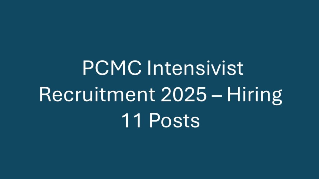 Overview Pimpri Chinchwad Municipal Corporation (PCMC) is seeking experienced Intensivists to strengthen its critical care medical services. This is a