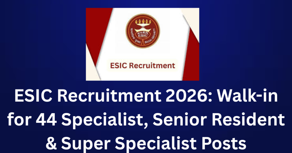 Overview Details Information Organization Employees State Insurance Corporation (ESIC) Total Vacancies 44 Posts Post Type Specialist, Senior Resident, Super Specialist