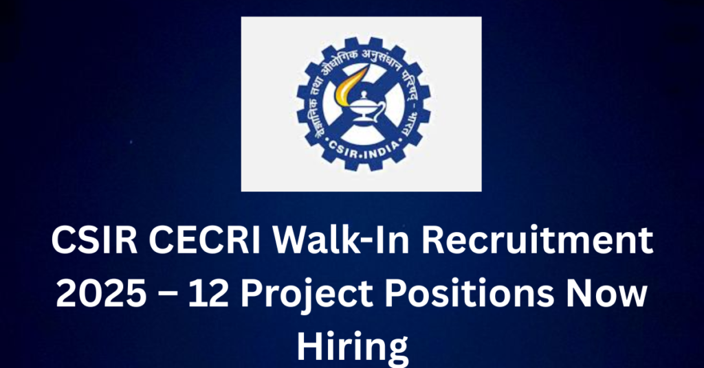 Overview CSIR Central Electrochemical Research Institute (CSIR-CECRI), a prestigious government research institute, is inviting applications for 12 project-based positions. This