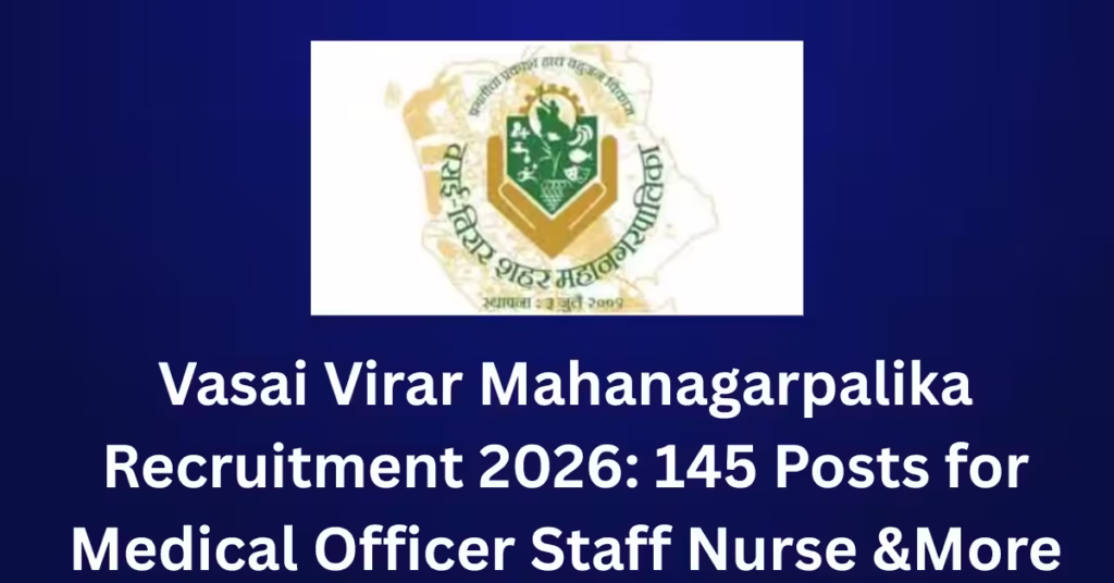 Overview Details Information Organization Vasai Virar City Municipal Corporation (VVCMC) Total Vacancies 145 Posts Post Type Medical Officer, Staff Nurse,