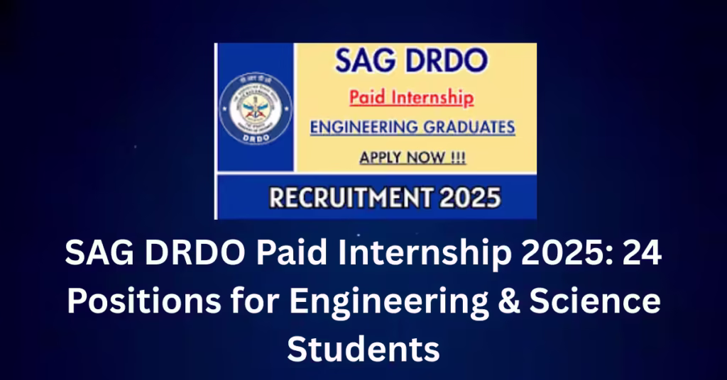 SAG DRDO Paid Internship 2025: 24 Positions for Engineering & Science Students