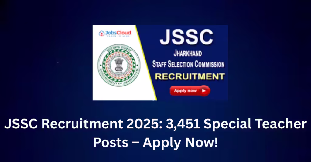 Overview Organization: Jharkhand Staff Selection Commission (JSSC) Total Vacancies: 3,451 Posts Post Name: Special Teacher (Trained Assistant Teacher) Job Type: