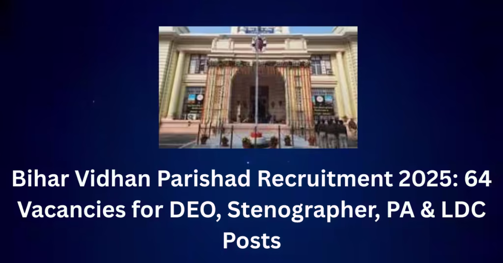 Overview Organization: Bihar Vidhan Parishad Total Vacancies: 64 Posts Post Type: Personal Assistant, Data Entry Operator, Lower Division Clerk, Stenographer