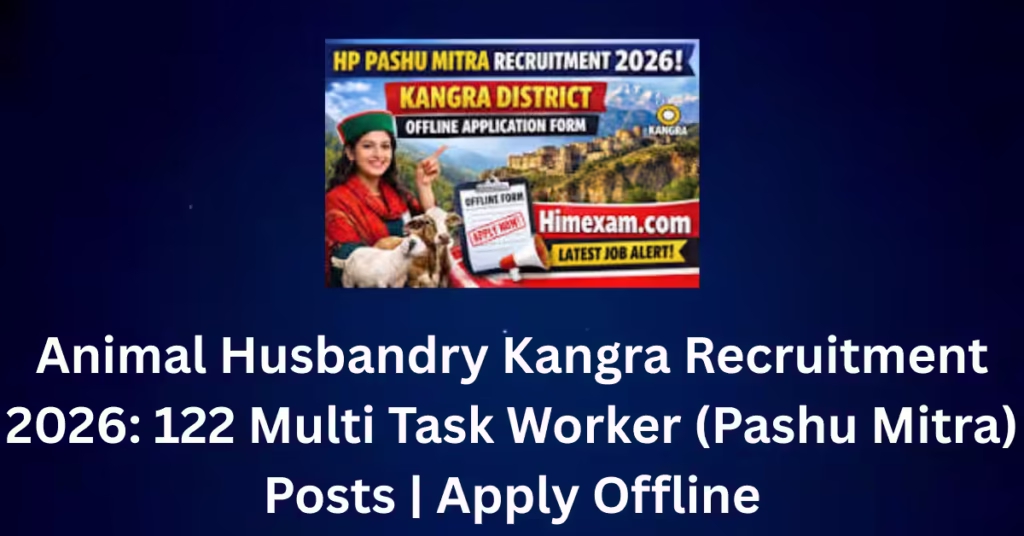 Overview The Office of Deputy Director, Animal Health/Breeding, Kangra at Dharamshala has announced recruitment for 122 Multi Task Worker (Pashu