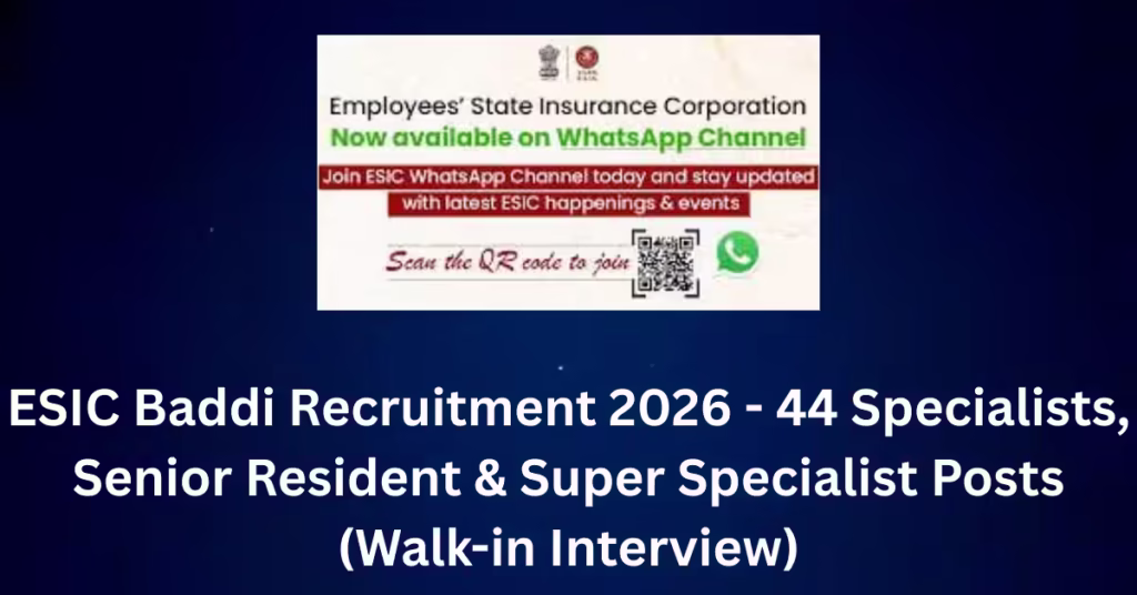 Overview The Employees’ State Insurance Corporation (ESIC) Model Hospital, Baddi, Himachal Pradesh is conducting a walk-in interview for 44 medical