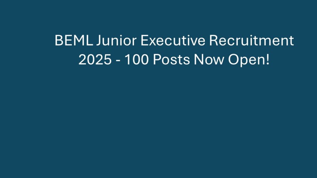 Bharat Earth Movers Limited (BEML), a prestigious public sector undertaking, is inviting applications for 100 Junior Executive positions across multiple