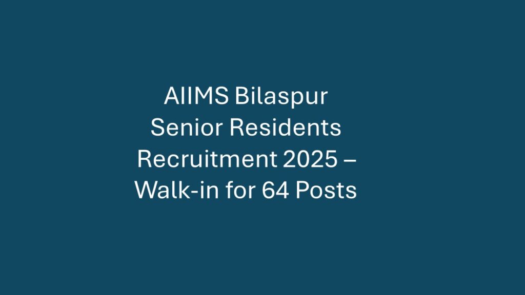 Overview All India Institute of Medical Sciences (AIIMS) Bilaspur is hiring 64 Senior Residents through a walk-in interview process. This