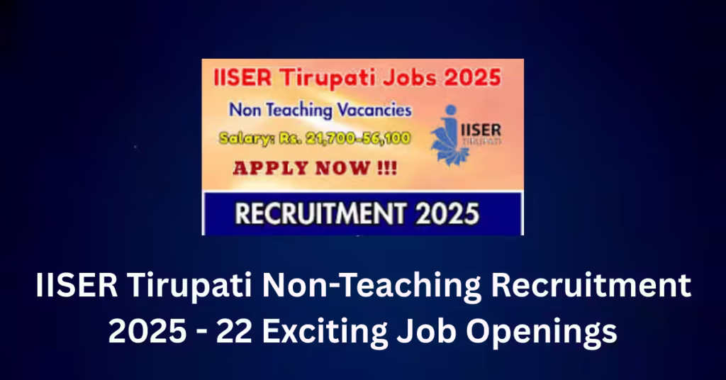 Overview Indian Institute of Science Education and Research Tirupati (IISER Tirupati) is hiring 22 skilled professionals for various non-teaching positions