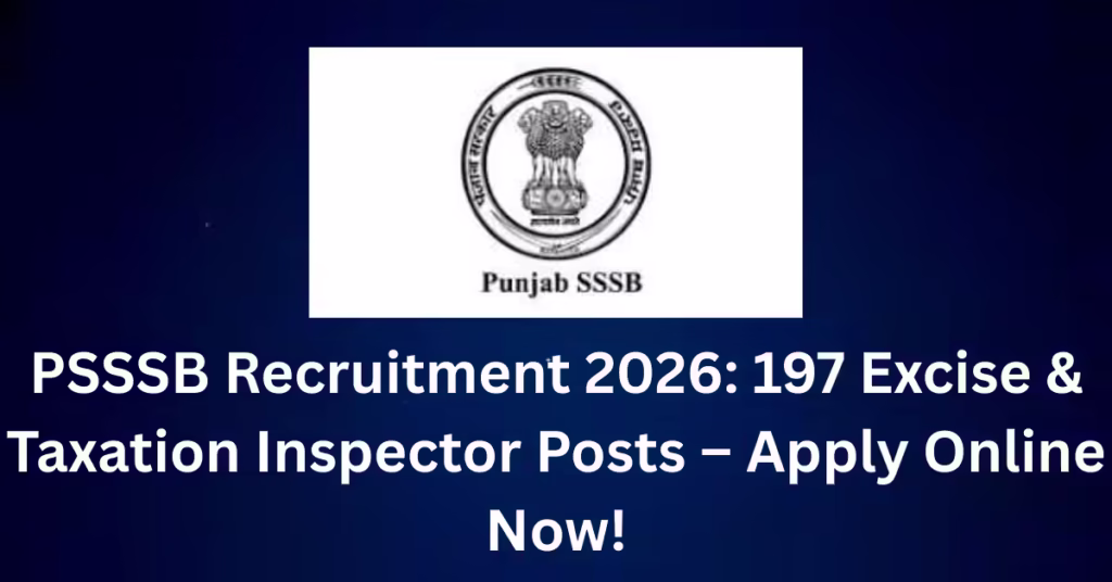 Overview The Punjab Subordinate Service Selection Board (PSSSB) has announced recruitment for 197 Excise and Taxation Inspector positions. This is