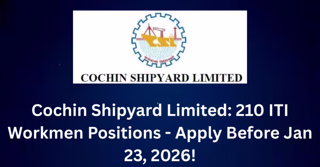 Overview Organization: Cochin Shipyard Limited (CSL) Total Vacancies: 210 Posts Post Type: Welder Cum Fitter, Machinist, Fitter (Electrical/Electronics), Crane Operator,