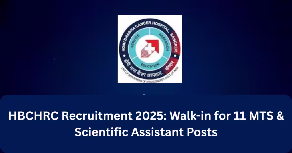 HBCHRC Recruitment 2025: Walk-in for 11 MTS & Scientific Assistant Posts