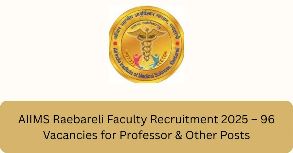 Overview Organization: All India Institute of Medical Sciences (AIIMS), Raebareli Total Vacancies: 96 Posts Post Type: Faculty Group A Job