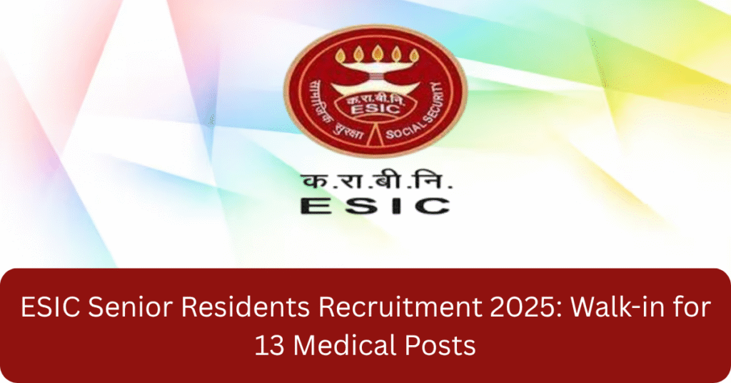 Overview The Employees State Insurance Corporation (ESIC) invites eligible medical professionals to attend a walk-in interview for 13 Senior Resident