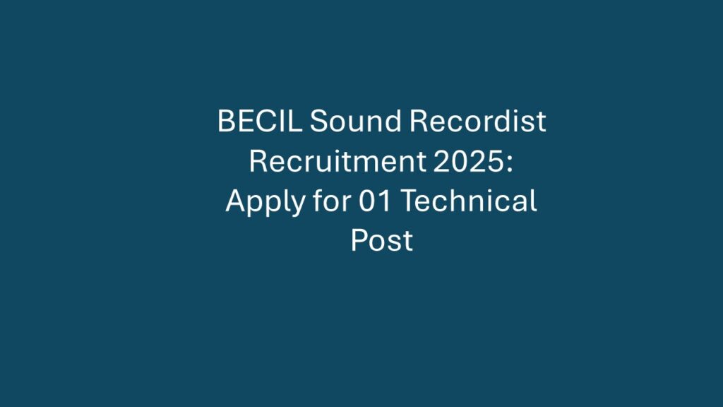 Overview Organization: Broadcast Engineering Consultants India Limited (BECIL) Total Vacancies: 01 Post Post Type: Sound Recordist cum Technical Engineer Job
