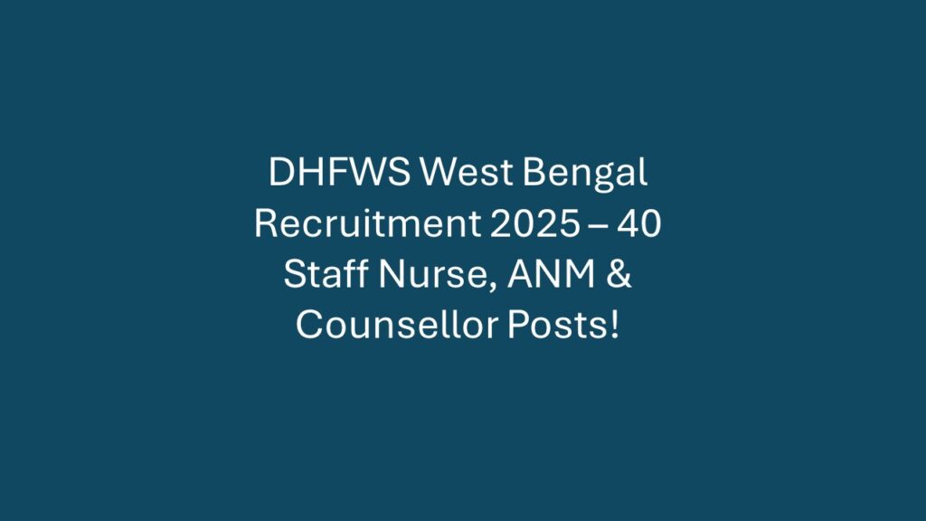 Overview Organization: District Health and Family Welfare Samity, West Bengal (DHFWS WB) Total Vacancies: 40 Posts Post Type: Staff Nurse,