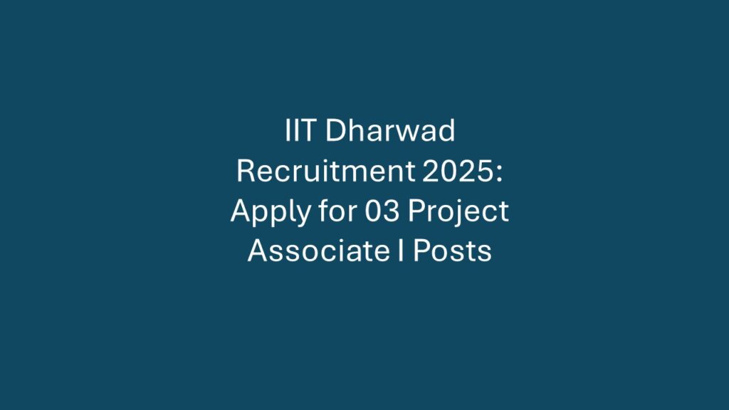 The Indian Institute of Technology Dharwad (IIT Dharwad) invites applications from qualified candidates for Project Associate I positions. This is
