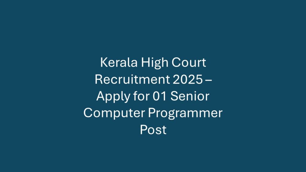 Organization: Kerala High Court Total Vacancies: 01 Post Post Name: Senior Computer Programmer Job Type: Contract/Government Application Mode: Online only