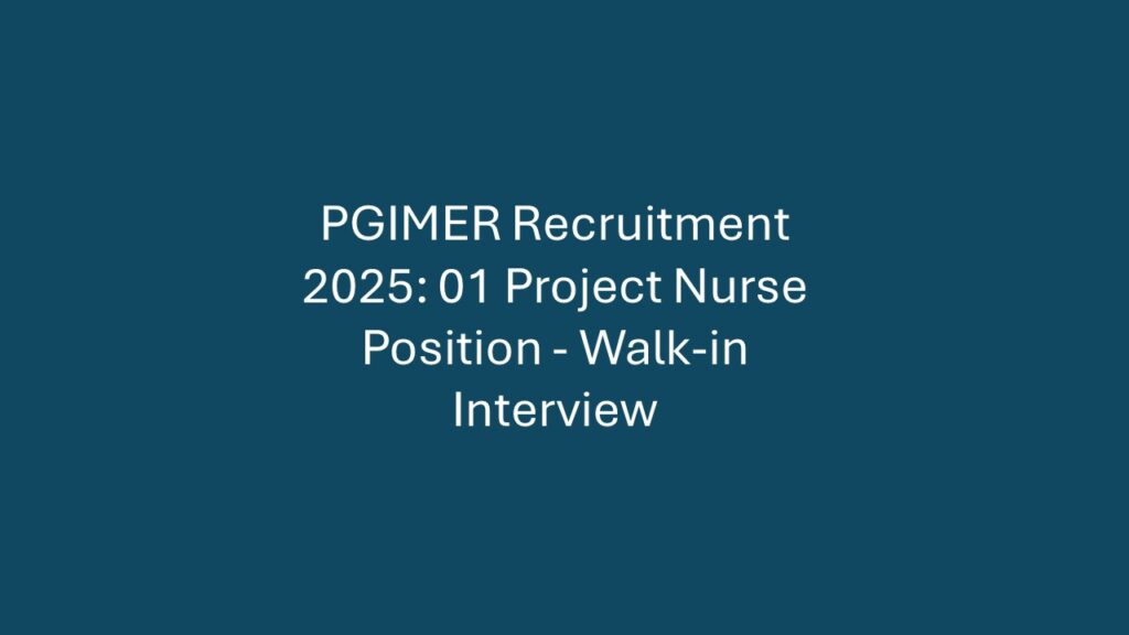 Organization: Postgraduate Institute of Medical Education and Research (PGIMER), Chandigarh Total Vacancies: 01 Post Post Name: Project Nurse Job Type: