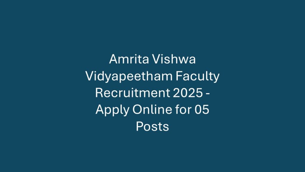 Overview Amrita Vishwa Vidyapeetham invites applications from qualified candidates for Faculty positions in Electrical & Computer Engineering at their Coimbatore