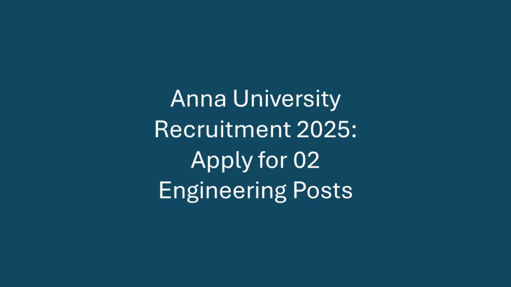 Anna University invites applications from qualified candidates for Energy Engineer and Diploma Engineer positions. This is a great opportunity for