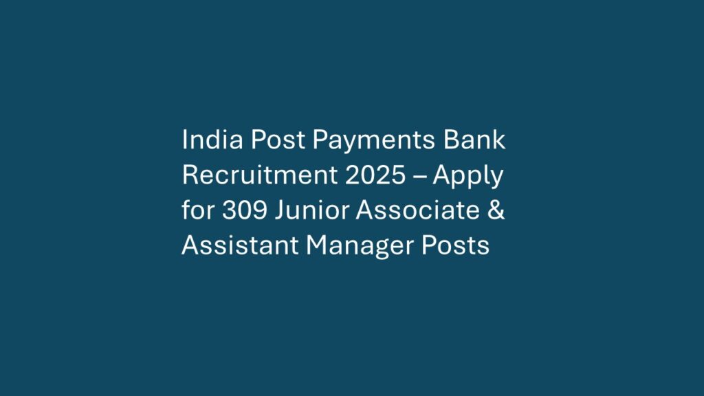 Organization: India Post Payments Bank (IPPB) Total Vacancies: 309 Posts Post Type: Junior Associate & Assistant Manager (Deputation/Foreign Service basis)