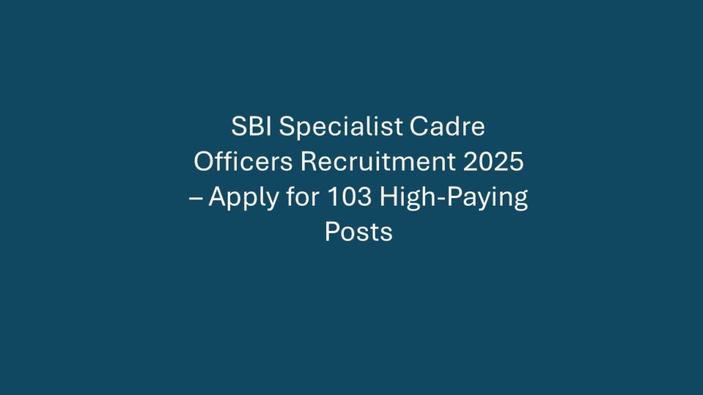 State Bank of India (SBI) has announced an exciting opportunity for professionals to join as Specialist Cadre Officers in the