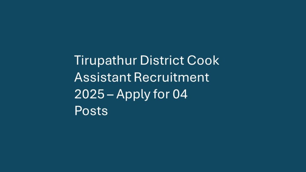 Overview Organization: Tirupathur District, Tamil Nadu Total Vacancies: 04 Posts Post Type: Cook Assistant Job Type: Full-time (Government) Application Mode: