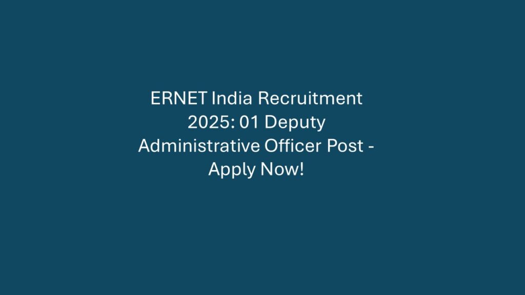 Overview Organization: Education and Research Network of India (ERNET India) Total Vacancies: 01 Post Post Name: Deputy Administrative Officer Job