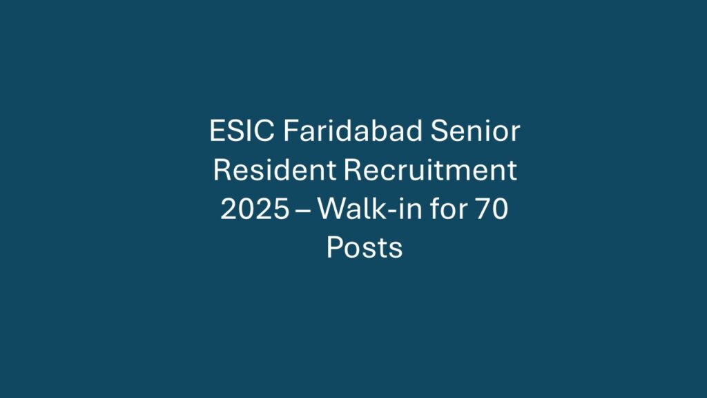 The Employees State Insurance Corporation (ESIC), Faridabad has announced an exciting opportunity for medical professionals. This is a walk-in interview